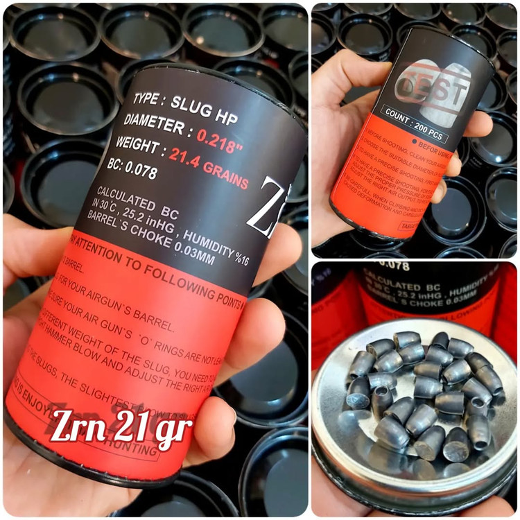 اسلاگ ZRN وزن : 21 gr بسیار خوش ساخت و دقیق قابل استفاده روی لول های ۱۲ خان و ۶ خان شک و تخریب بالا پک های ۲۰۰ عددی دیامتر تست برای مجیک یابی دیامتر 216/217/218 : دیامتر تست ؛ : دیامتر واحد ؛ ۳۵۰ ت شک بالا بدلیل هالوپوینت بزرگ تر ، بالستیک و خط سیر عالی برای لانگ رنج ، بسیار مناسب در قیاس با اسلاگ وارداتی . در حال حاضر دیامترهای 217. و 218 موجود می باشد .